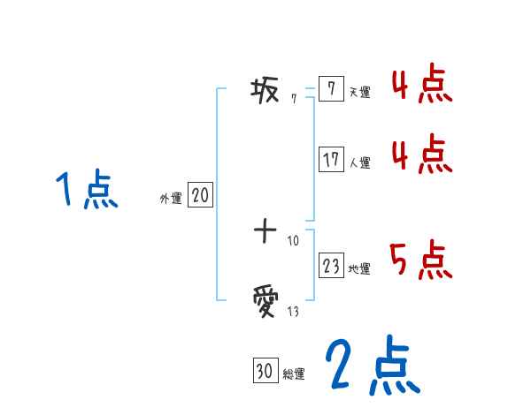 坂十愛さんの画数の鑑定結果