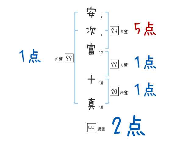 安次富十真さんの画数の鑑定結果