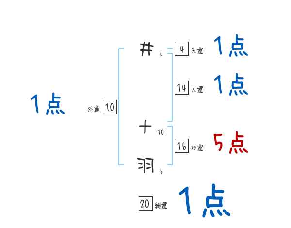 外運![]() | 井十羽さんの外運は10画の1つ星!不安を感じやすい傾向。ストレスを抱えないように注意しましょう。 生活面を象徴する運勢です。外部から受ける影響力を表し、結婚運、家庭運や職場、環境への順応性を表します。 |
