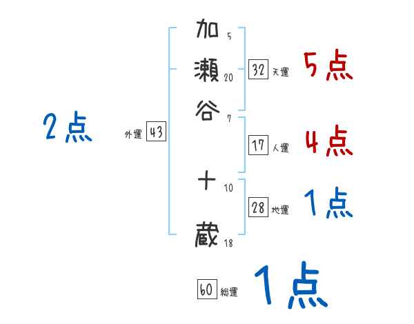 加瀬谷十蔵さんの画数の鑑定結果