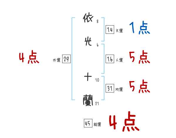 依光十蘭さんの画数の鑑定結果