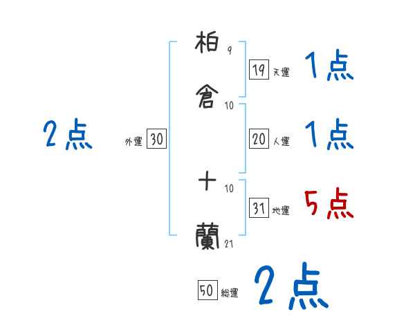天運![]() | 柏倉十蘭さんの天運は19画の1つ星!優れた才能を持ちますが、協調性が足りないことも。周りの人と協力する事を意識しましょう。 家系が持つ宿命的な運勢を表します。祖先から受け継いだ苗字ですので自分の力が及びません。家柄を象徴します。 |