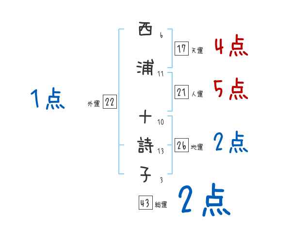 西浦十詩子さんの画数の鑑定結果