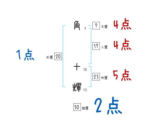 天運![]() | 角十輝さんの天運は7画の4つ星!強い意志や信念を持ち独立心が強い。自立する。 家系が持つ宿命的な運勢を表します。祖先から受け継いだ苗字ですので自分の力が及びません。家柄を象徴します。 |