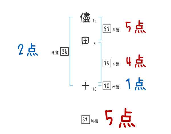 人運![]() | 儘田十さんの人運は15画の4つ星!人徳があり出世する。順調に物事を進め円満な人生。 性格や才能などを表す2番目に重要な運勢です。人間関係や協調性、社会的な成功に影響します。主に20歳から50歳ぐらいまでの中年期の運勢を表します。 |