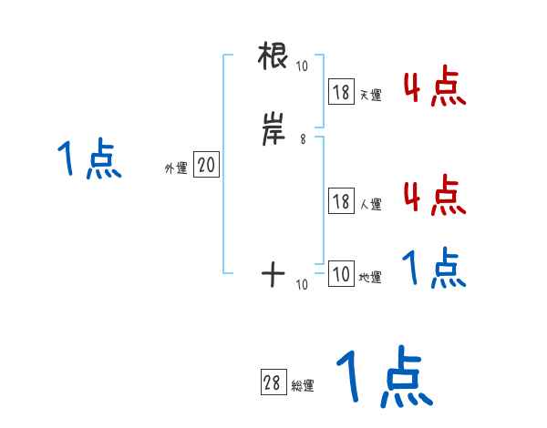 総運![]() | 根岸十さんの総運は28画の1つ星!家庭環境に注意。スポーツで活躍できる能力があるかも。 あなたの人生を表す1番重要な運勢です。生涯を通じて影響する総合運となり、主に50歳以降の晩年期に影響を及ぼします。 |