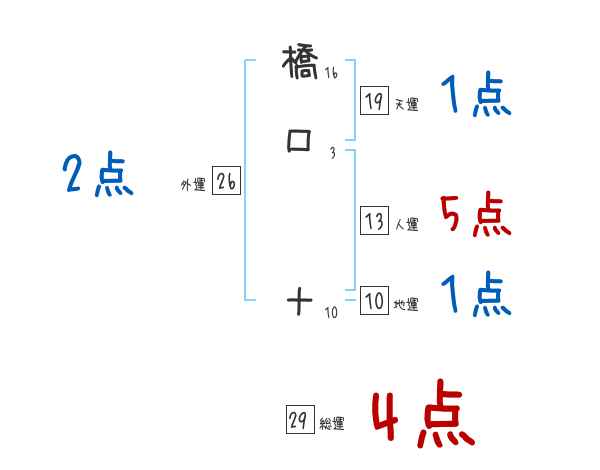 総運![]() | 橋口十さんの総運は29画の4つ星!完全主義で才能がある。厳格な心の持ち主。 あなたの人生を表す1番重要な運勢です。生涯を通じて影響する総合運となり、主に50歳以降の晩年期に影響を及ぼします。 |
