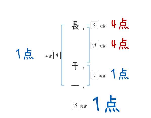 天運![]() | 長千一さんの天運は8画の4つ星!勤勉家。根気強く努力し成功する。忍耐力がある。 家系が持つ宿命的な運勢を表します。祖先から受け継いだ苗字ですので自分の力が及びません。家柄を象徴します。 |