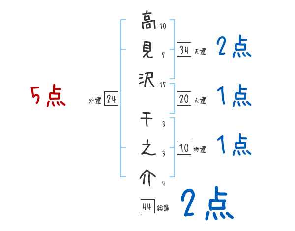 高見沢千之介さんの画数の鑑定結果