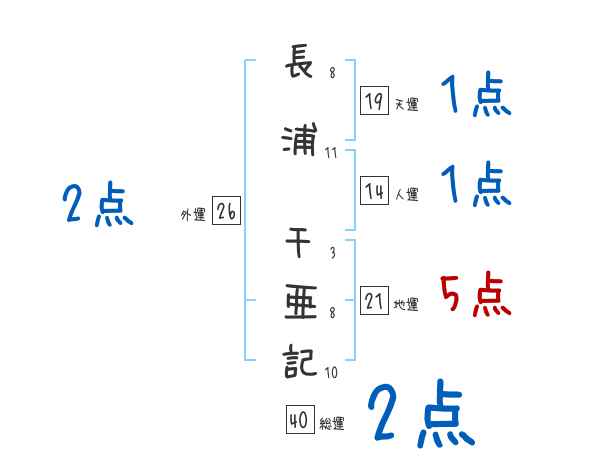 長浦千亜記さんの画数の鑑定結果