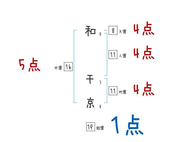 天運![]() | 和千京さんの天運は8画の4つ星!勤勉家。根気強く努力し成功する。忍耐力がある。 家系が持つ宿命的な運勢を表します。祖先から受け継いだ苗字ですので自分の力が及びません。家柄を象徴します。 |