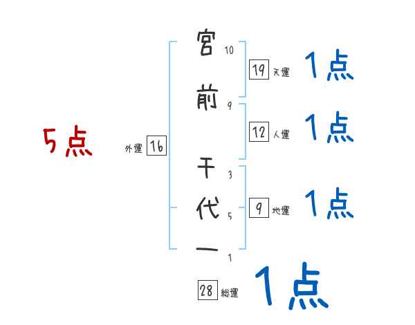 宮前千代一さんの画数の鑑定結果