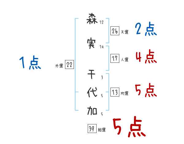 天運![]() | 森実千代加さんの天運は26画の2つ星!波瀾万丈かも。信頼できる人を大事にしましょう。 家系が持つ宿命的な運勢を表します。祖先から受け継いだ苗字ですので自分の力が及びません。家柄を象徴します。 |