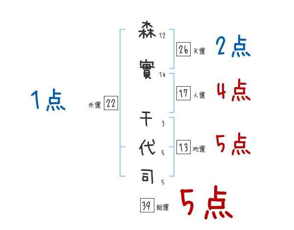 天運![]() | 森實千代司さんの天運は26画の2つ星!波瀾万丈かも。信頼できる人を大事にしましょう。 家系が持つ宿命的な運勢を表します。祖先から受け継いだ苗字ですので自分の力が及びません。家柄を象徴します。 |