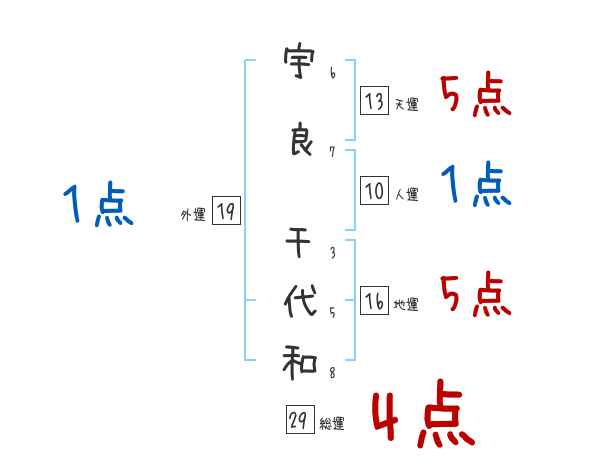 宇良千代和さんの画数の鑑定結果