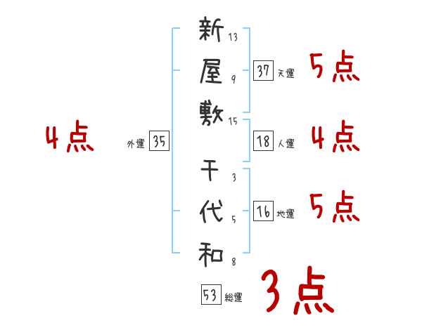 新屋敷千代和さんの画数の鑑定結果