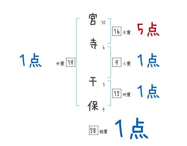 宮寺千保さんの画数の鑑定結果