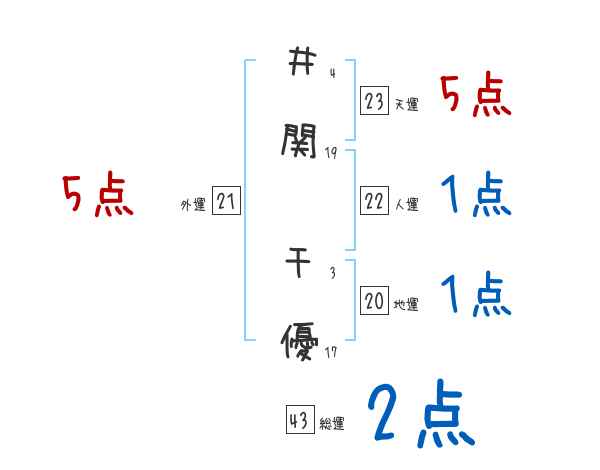 井関千優さんの画数の鑑定結果