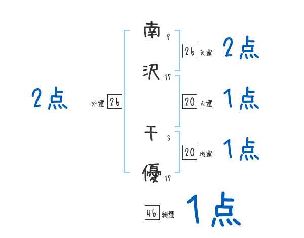 南沢千優さんの画数の鑑定結果