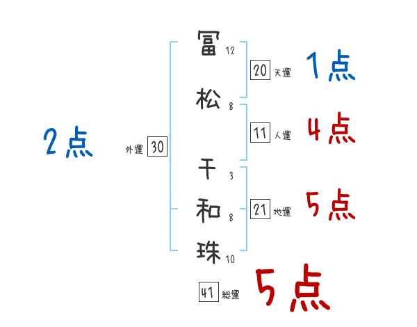 外運![]() | 冨松千和珠さんの外運は30画の2つ星!浮き沈みの激しさに注意しましょう。 生活面を象徴する運勢です。外部から受ける影響力を表し、結婚運、家庭運や職場、環境への順応性を表します。 |