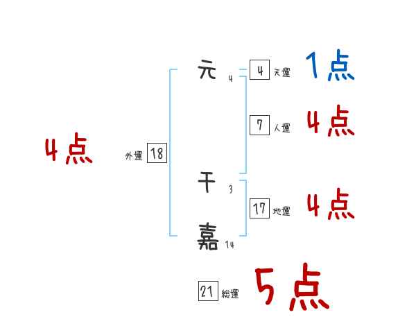 元千嘉さんの画数の鑑定結果