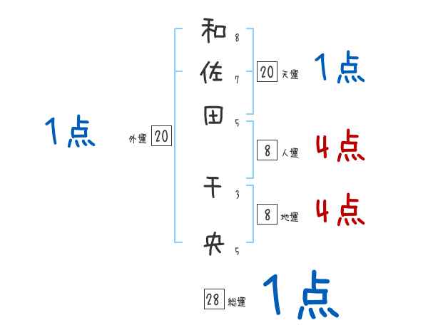 総運![]() | 和佐田千央さんの総運は28画の1つ星!家庭環境に注意。スポーツで活躍できる能力があるかも。 あなたの人生を表す1番重要な運勢です。生涯を通じて影響する総合運となり、主に50歳以降の晩年期に影響を及ぼします。 |