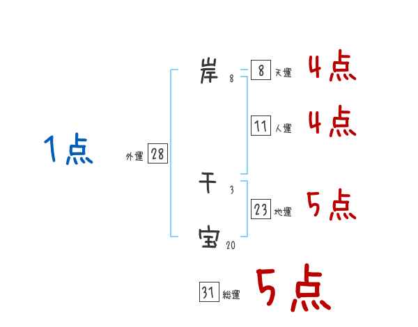 岸千宝さんの画数の鑑定結果