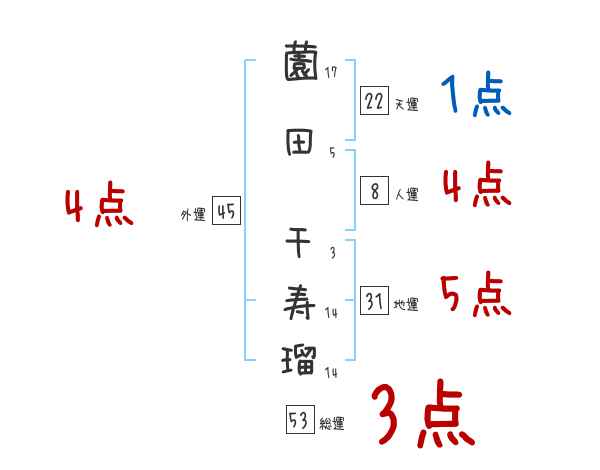 薗田千寿瑠さんの画数の鑑定結果