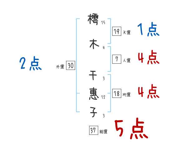 天運![]() | 樗木千惠子さんの天運は19画の1つ星!優れた才能を持ちますが、協調性が足りないことも。周りの人と協力する事を意識しましょう。 家系が持つ宿命的な運勢を表します。祖先から受け継いだ苗字ですので自分の力が及びません。家柄を象徴します。 |