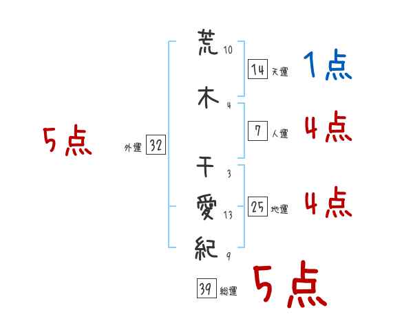 外運![]() | 荒木千愛紀さんの外運は32画の5つ星!柔軟性があり成功する。チャンスが多く金運が良い。 生活面を象徴する運勢です。外部から受ける影響力を表し、結婚運、家庭運や職場、環境への順応性を表します。 |