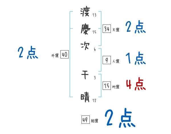天運![]() | 渡慶次千晴さんの天運は34画の2つ星!独創性に優れるが、自尊心が強く災難に注意しましょう。 家系が持つ宿命的な運勢を表します。祖先から受け継いだ苗字ですので自分の力が及びません。家柄を象徴します。 |