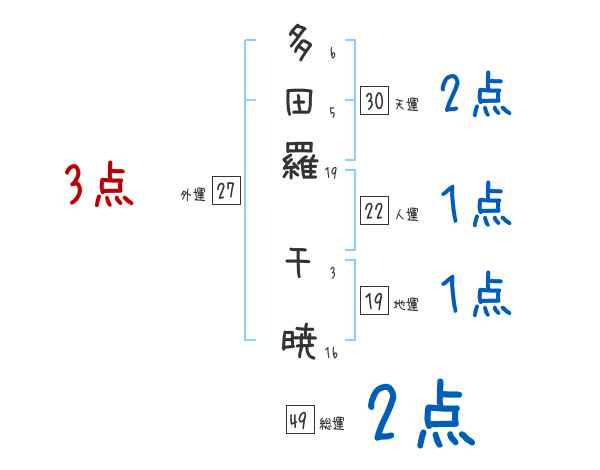 多田羅千暁さんの画数の鑑定結果