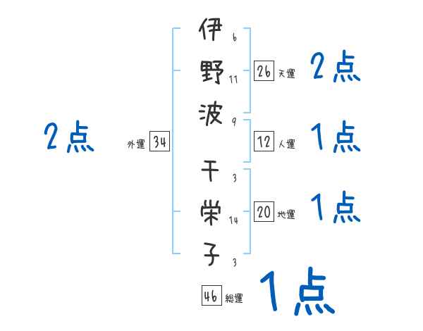 天運![]() | 伊野波千栄子さんの天運は26画の2つ星!波瀾万丈かも。信頼できる人を大事にしましょう。 家系が持つ宿命的な運勢を表します。祖先から受け継いだ苗字ですので自分の力が及びません。家柄を象徴します。 |