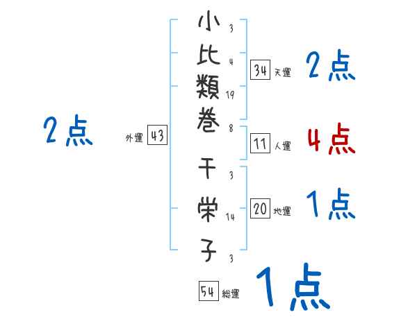 小比類巻千栄子さんの画数の鑑定結果