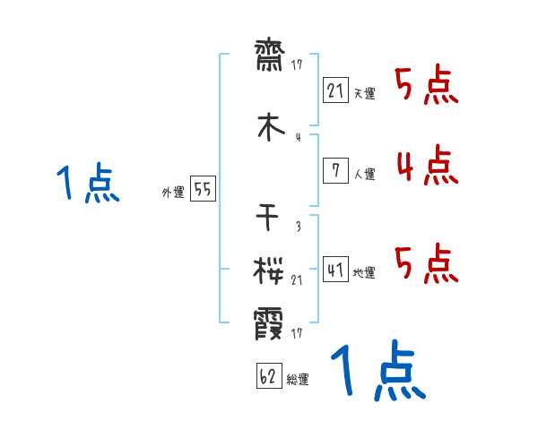 齋木千桜霞さんの画数の鑑定結果