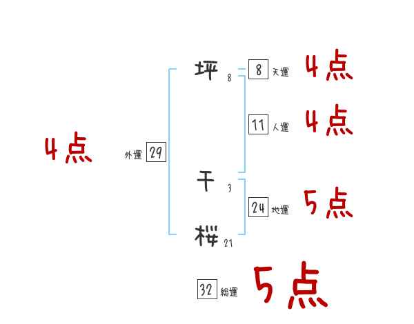 坪千桜さんの画数の鑑定結果
