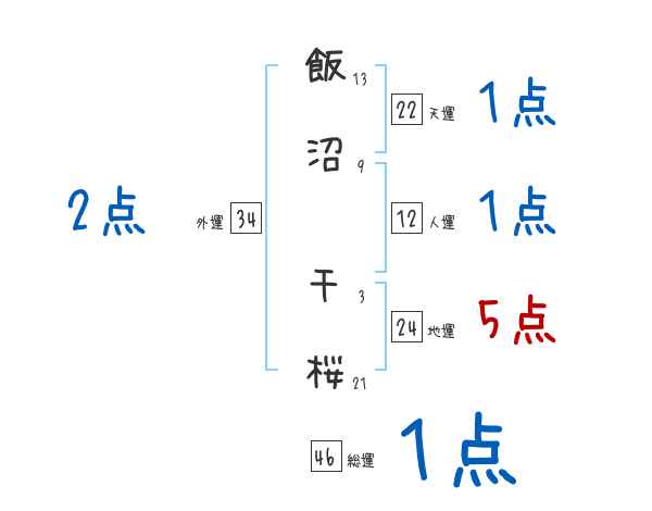 飯沼千桜さんの画数の鑑定結果