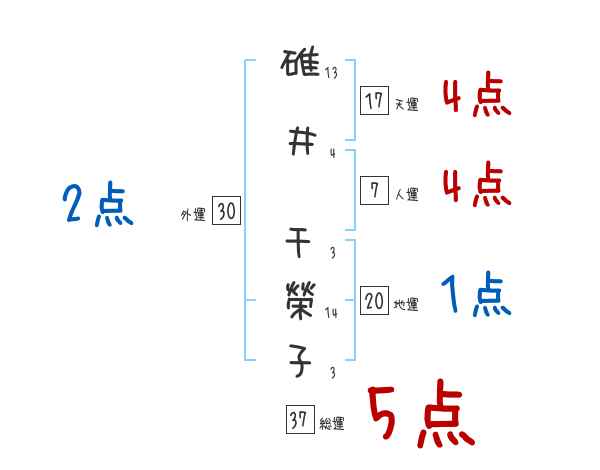 総運![]() | 碓井千榮子さんの総運は37画の5つ星!努力家で順応性に優れる。現実的な考え方ができ忠実に物事をこなす。 あなたの人生を表す1番重要な運勢です。生涯を通じて影響する総合運となり、主に50歳以降の晩年期に影響を及ぼします。 |