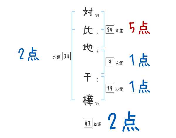 対比地千樺さんの画数の鑑定結果