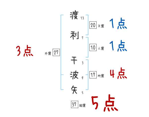 外運![]() | 渡利千波矢さんの外運は27画の3つ星!頭脳明晰だが強情で摩擦が多い傾向。孤立に注意。 生活面を象徴する運勢です。外部から受ける影響力を表し、結婚運、家庭運や職場、環境への順応性を表します。 |