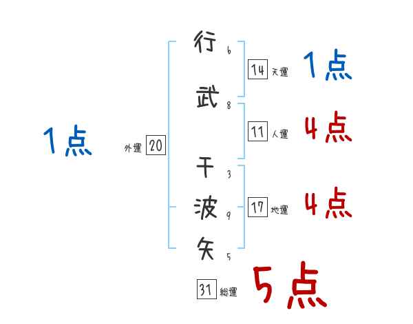 総運![]() | 行武千波矢さんの総運は31画の5つ星!社交性があり判断力に優れる。順風満帆な人生で円満な生活。 あなたの人生を表す1番重要な運勢です。生涯を通じて影響する総合運となり、主に50歳以降の晩年期に影響を及ぼします。 |