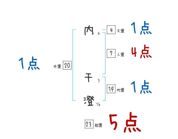 天運![]() | 内千澄さんの天運は4画の1つ星!感情が不安定で苦労するかも。周囲との協調を心掛けましょう。 家系が持つ宿命的な運勢を表します。祖先から受け継いだ苗字ですので自分の力が及びません。家柄を象徴します。 |