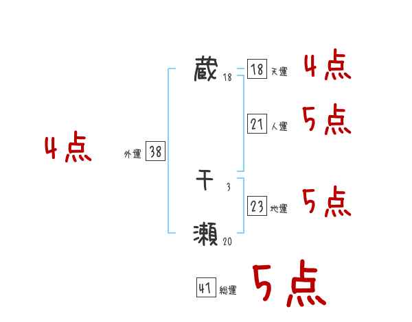 蔵千瀬さんの画数の鑑定結果