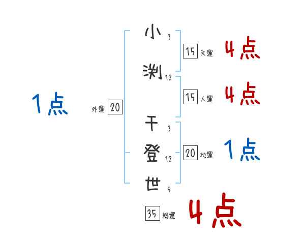天運![]() | 小渕千登世さんの天運は15画の4つ星!人徳があり出世する。順調に物事を進め円満な人生。 家系が持つ宿命的な運勢を表します。祖先から受け継いだ苗字ですので自分の力が及びません。家柄を象徴します。 |