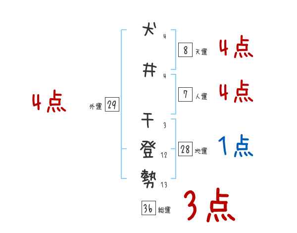 犬井千登勢さんの画数の鑑定結果