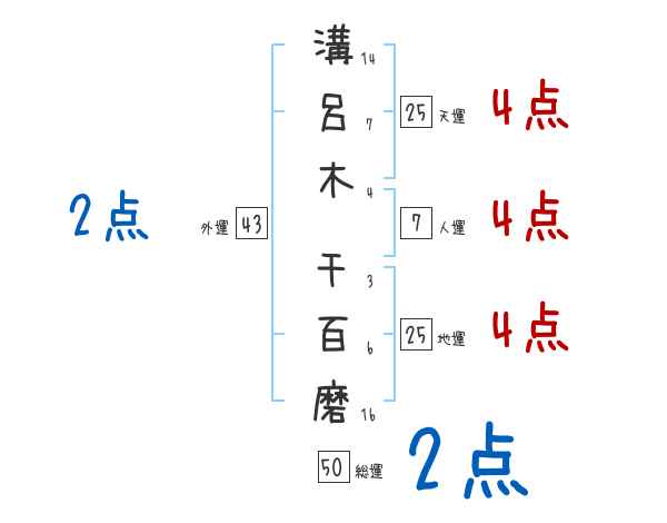 溝呂木千百磨さんの画数の鑑定結果