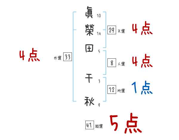 眞榮田千秋さんの画数の鑑定結果
