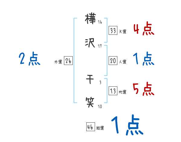 樺沢千笑さんの画数の鑑定結果