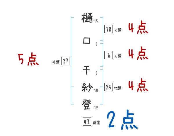 樋口千紗登さんの画数の鑑定結果