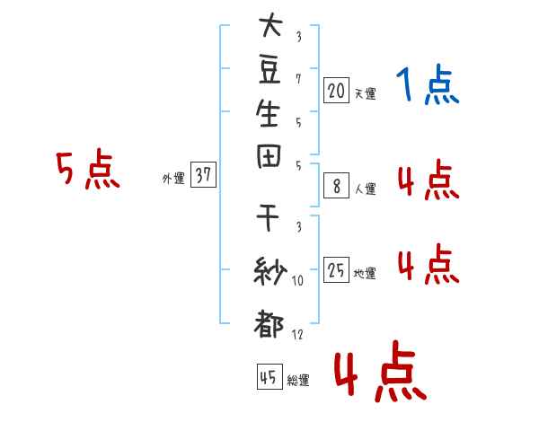 大豆生田千紗都さんの画数の鑑定結果